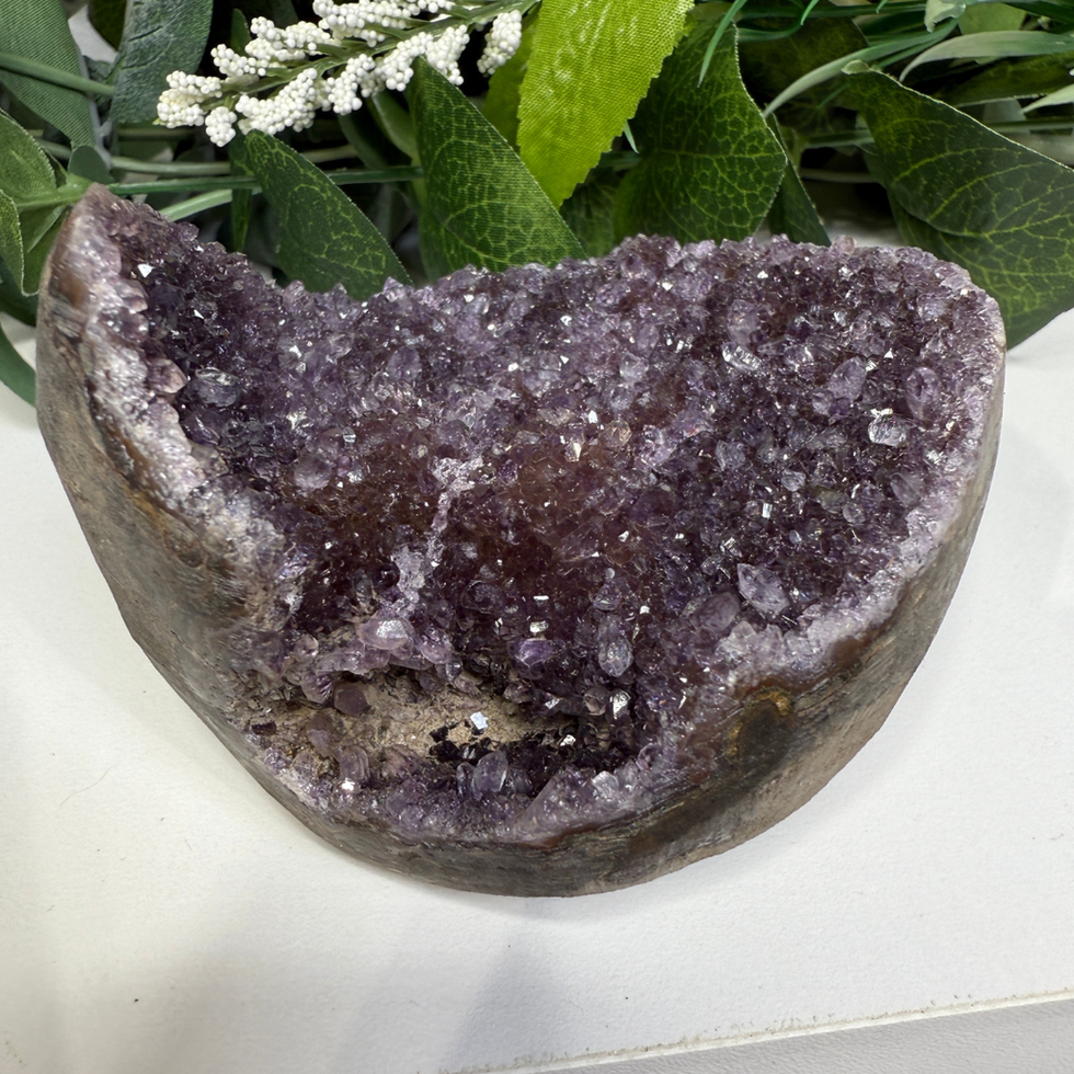 This Rainbow Amethyst cupcake comes from Uruguay and has a deep, rich purple tone with subtle warm highlights that give it that “rainbow” glow these pieces are known for. The crystals are tightly clustered, giving it a bold sparkle and a really grounded feel.