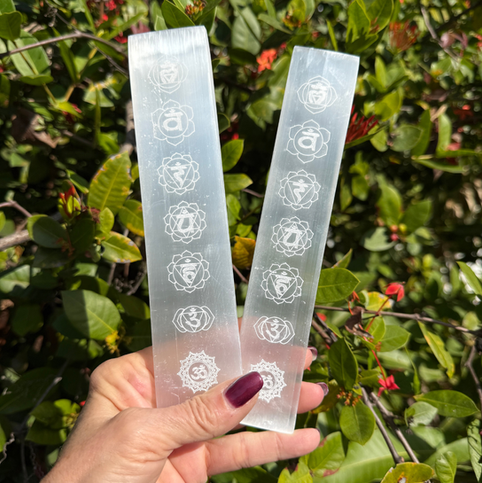 This polished bar features all seven chakra symbols, making it a simple tool for bringing your energy back into balance.